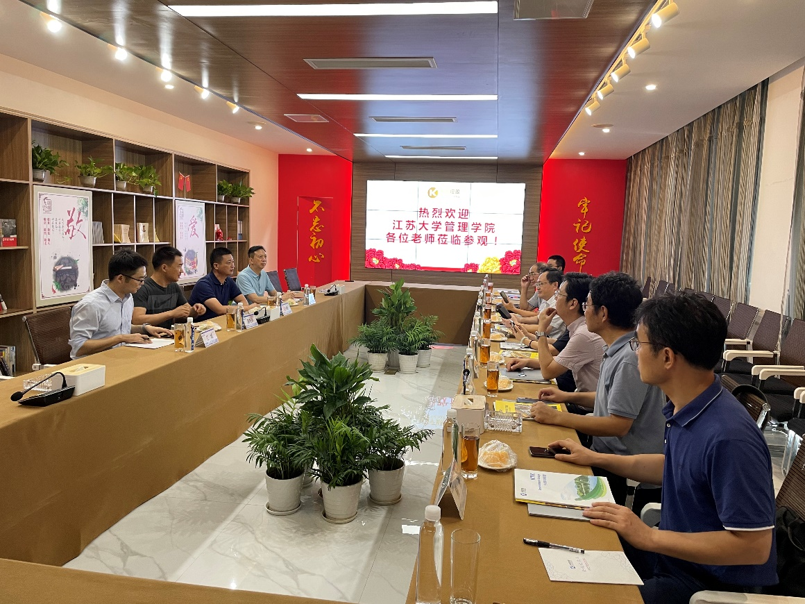 杜建国一行首先走访了今创集团股份有限公司(603680)。今创控股集团创立于1988年,涵盖轨道交通、5G通信、环境、船舶、房地产等多个板块,位列中国制造业民营企业500强、江苏民营企业200强。在公司副总经理左小鹏、国际业务部部长汤先帅(电子商务2009届校友)的带领下,参观了公司的展厅,学习了解了公司业务领域、党建文化等。在公司会议室,左小鹏等对学院老师的到来表示热烈欢迎,并详细介绍了企业发展历程、运营板块、人力资源开发以及未来愿景等。