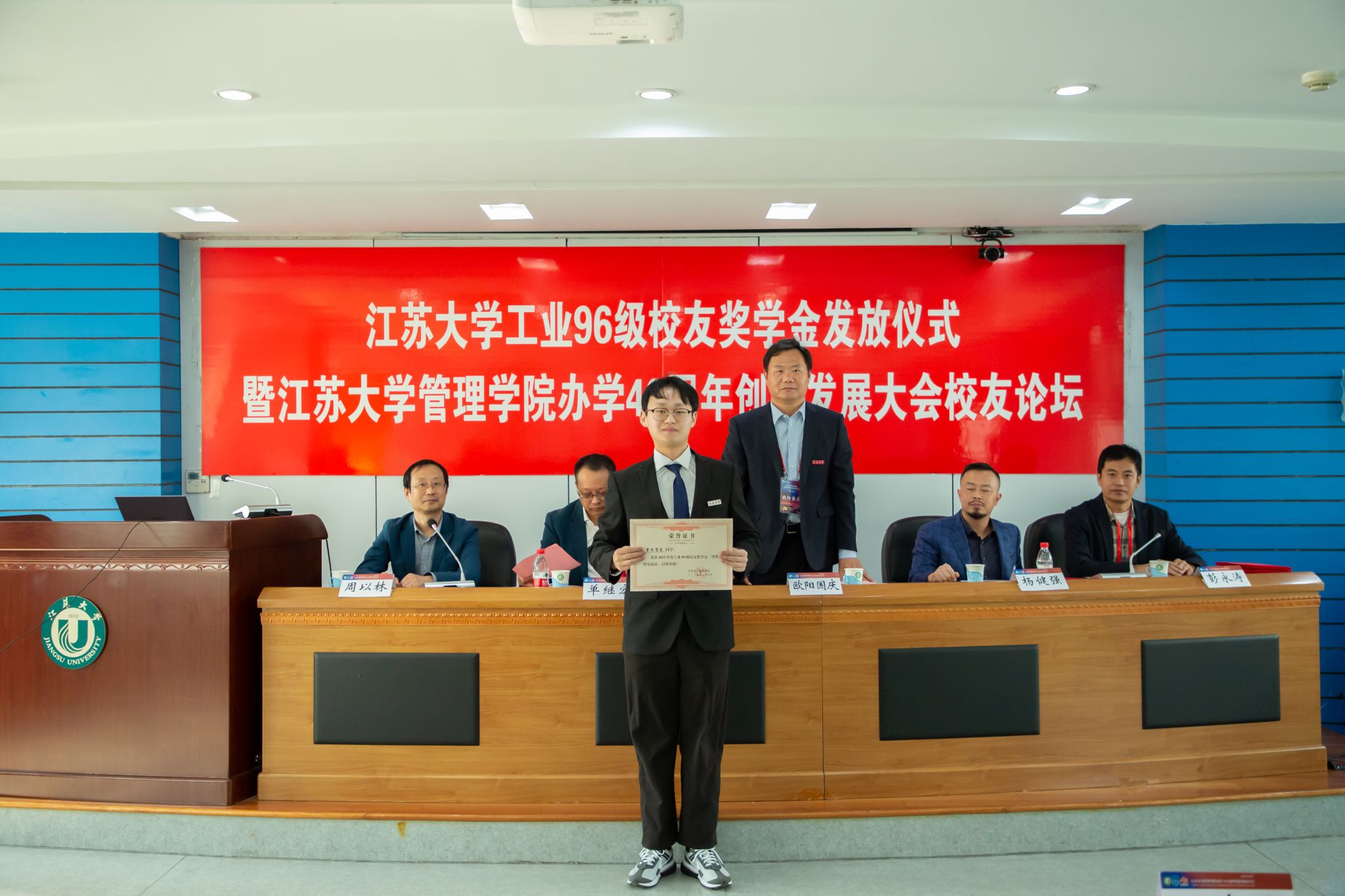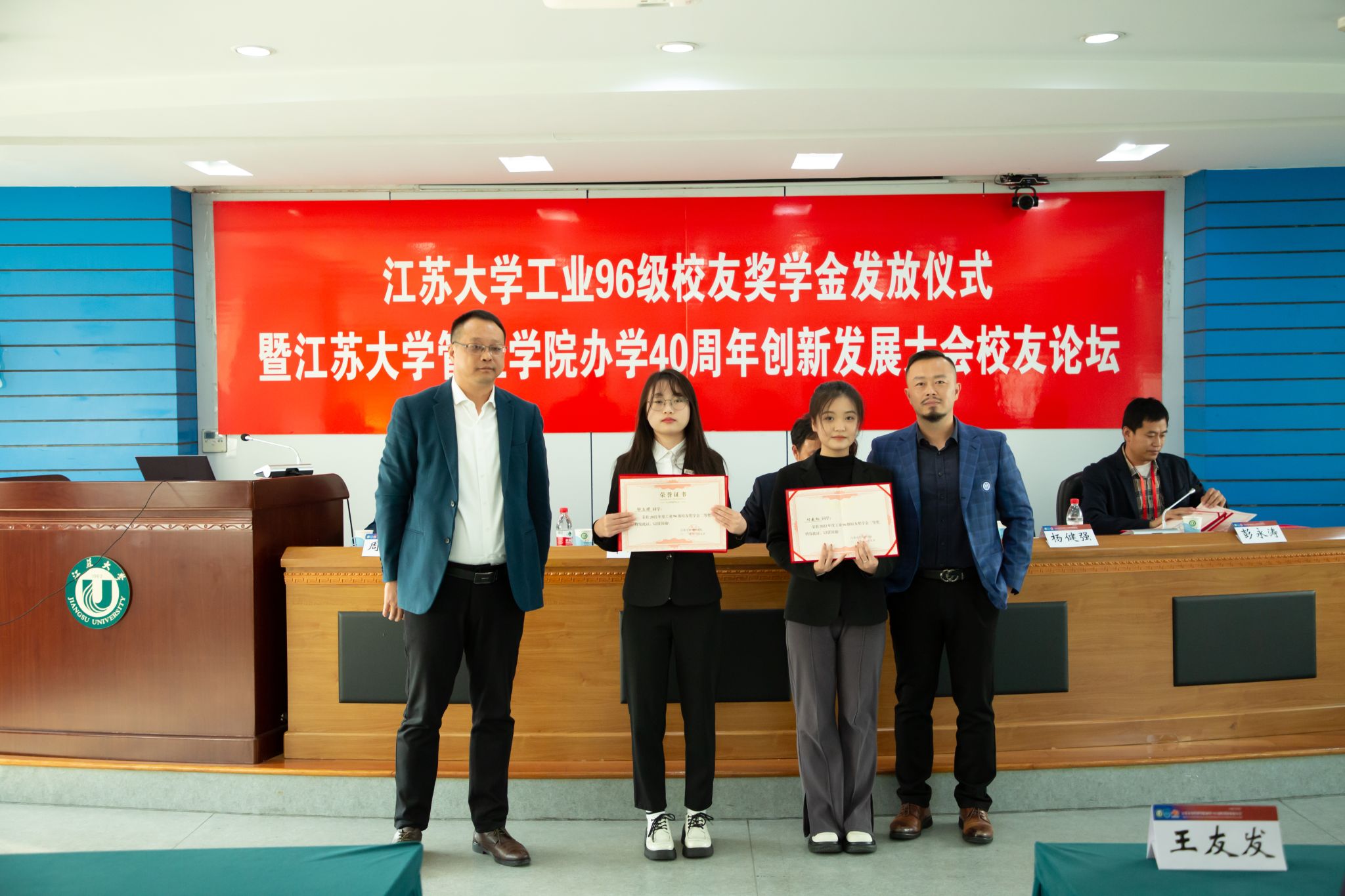 办学40周年创新发展大会校友论坛暨工业96级校友奖学金颁奖仪式在会议中心第三报告厅举行。工业工程96级校友代表杨健强、单继宏,成人网