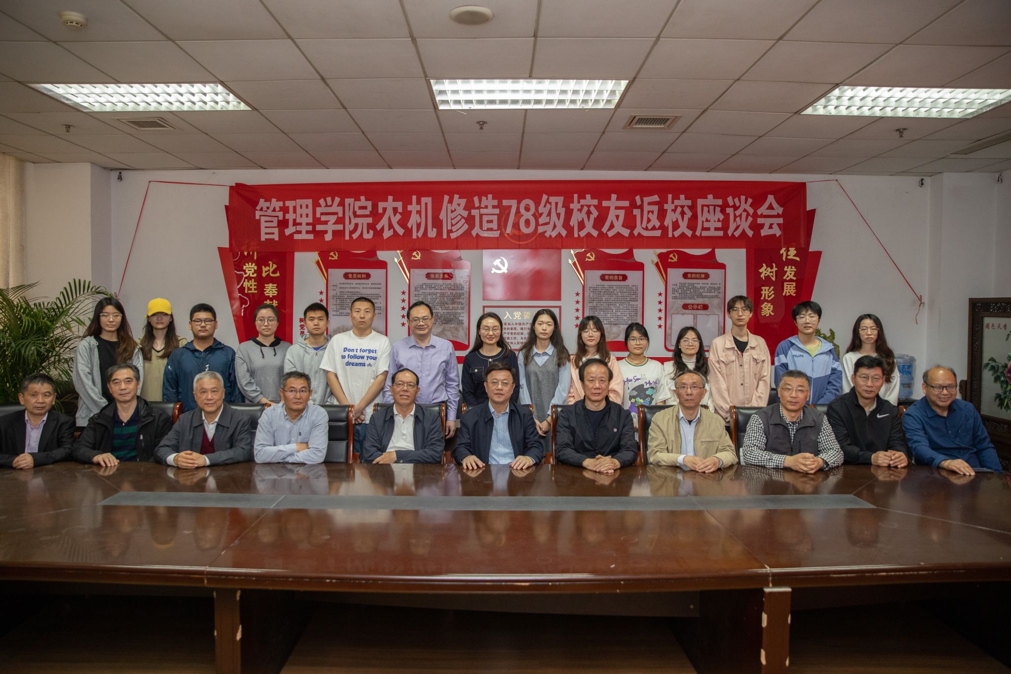 4月19日,成人网 农机修造78级校友返校座谈会在三江楼1411会议室举行,农机修造78级校友与在校生代表欢聚一堂,成人网 党委书记、院校友会会长王丽敏,院长、院党委副书记杜建国出席座谈会。